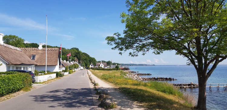 Der nächste Halt war Kopenhagen. Diese Stadt befindet sich in der Mitte einer Insel mit einer 60km langen schönen Bucht. Die gesamte Strecke war ein wunderbarer Radweg entlang des Strandes und auch das Wetter war passend mit viel Sonne. Entlang des Strandes waren schöne typisch dänische Häuschen aber auch moderne Villen immer mit der dänischen Fahne vor der Tür.